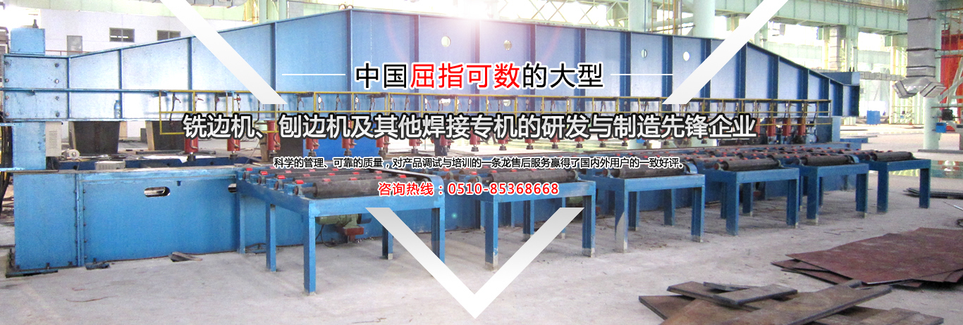公司是中國金屬銑削切割自動焊接工藝的搖籃,公司是國內(nèi)制造有壓梁、無壓梁銑邊機(jī)、刨邊機(jī)及其他焊接專機(jī)的專業(yè)廠家。取得國家專利局頒發(fā)的最新銑、刨邊機(jī)產(chǎn)品專利證書。通過了ISO9001.2000國際質(zhì)量體系認(rèn)證,并獲得了“全國用戶滿意產(chǎn)品”、“江蘇省質(zhì)量信得過AAA級品牌企業(yè)”的榮譽(yù)稱號。銷售網(wǎng)絡(luò)遍布全國,部分產(chǎn)品出口東南亞及歐美等國家。公司本著:質(zhì)量為首,用戶至上,信譽(yù)為本... 【詳細(xì)】